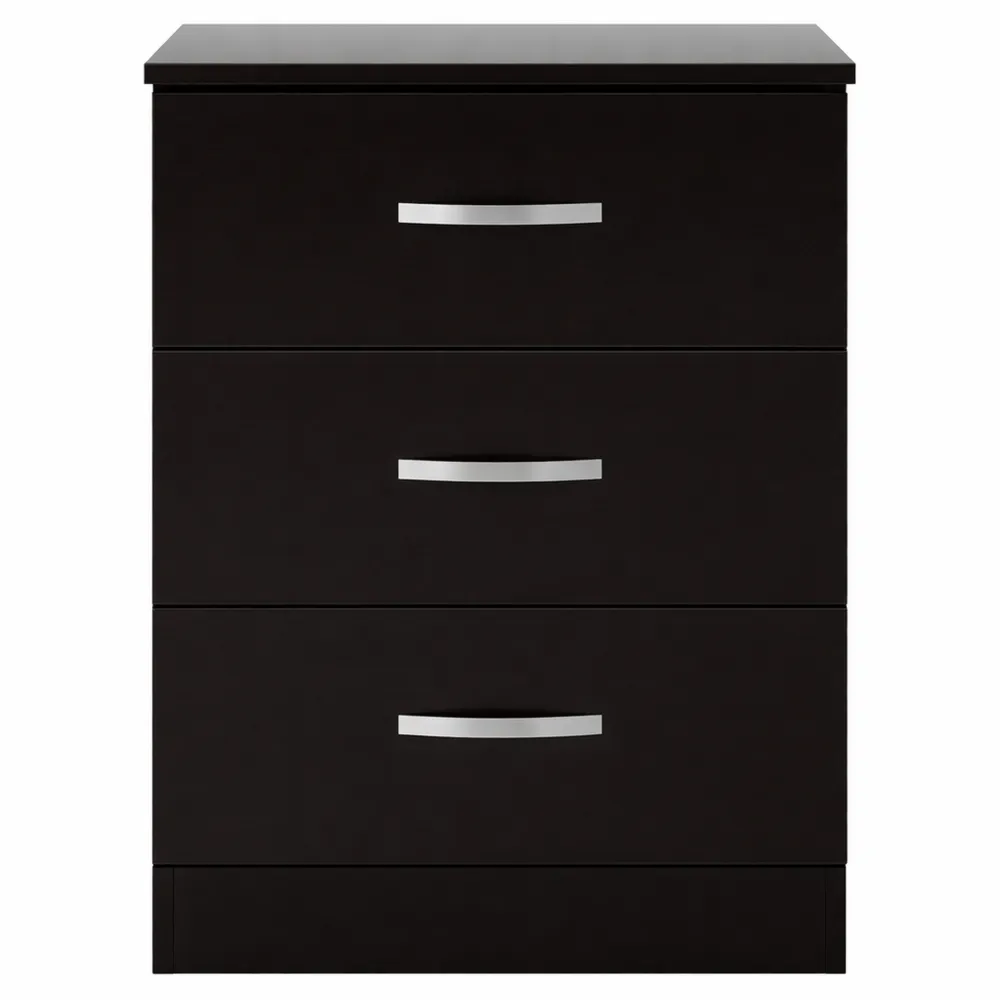 Cassettiera Nera a 3 Cassetti con Maniglie in Metallo per Camera da Letto