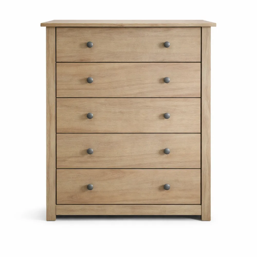 Questo comò in pino massiccio è dotato di 5 cassetti ampi per organizzare facilmente vari oggetti come abbigliamento e accessori. La finitura cerata offre un tocco liscio e durevole. Dimensioni: altezza 89 cm, larghezza 80 cm, profondità 41 cm. Il mobile necessita di assemblaggio e le istruzioni sono incluse.