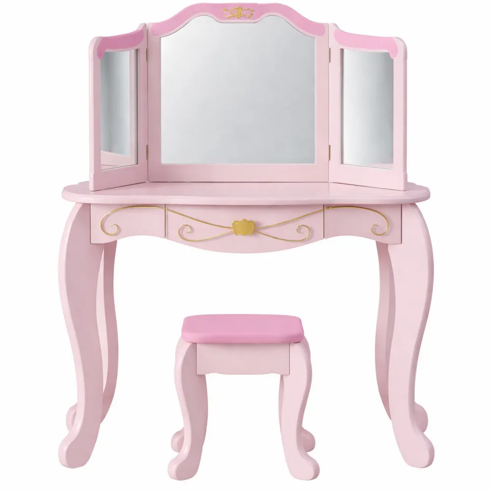 La toeletta con sgabello ha uno specchio a tre ante e un cassetto scorrevole per riporre oggetti. È semplice da montare con istruzioni incluse, ideale come attività ricreativa da fare insieme. Progettata per resistere all'usura del gioco dei bambini. Avvertenza: Contiene giocattolo. Si raccomanda la sorveglianza di un adulto. Avvertenza: Da usare sotto la diretta sorveglianza di un adulto. Avvertenza: Non adatto a bambini di età inferiore a 36 mesi.